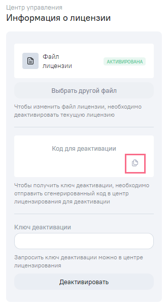 Для замены файла лицензии необходимо деактивировать лицензию.