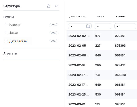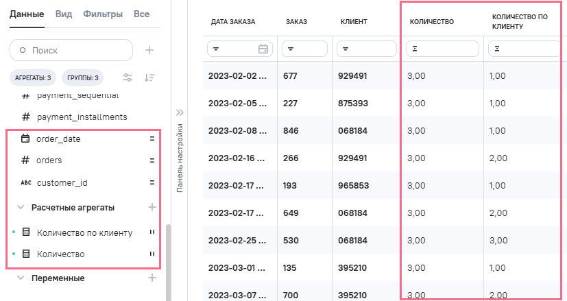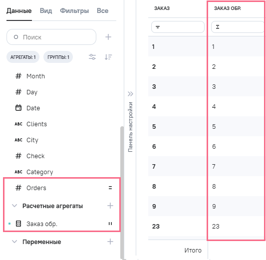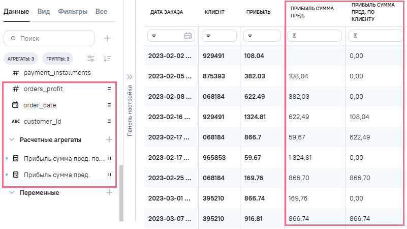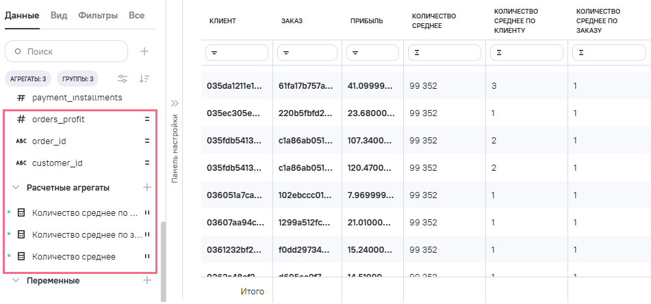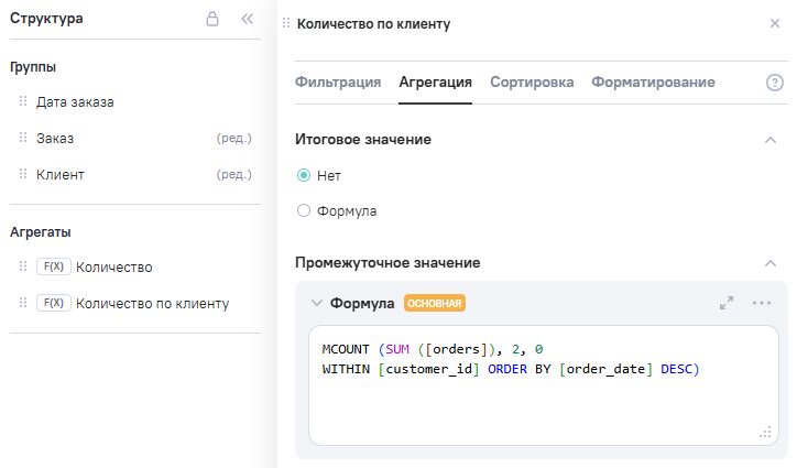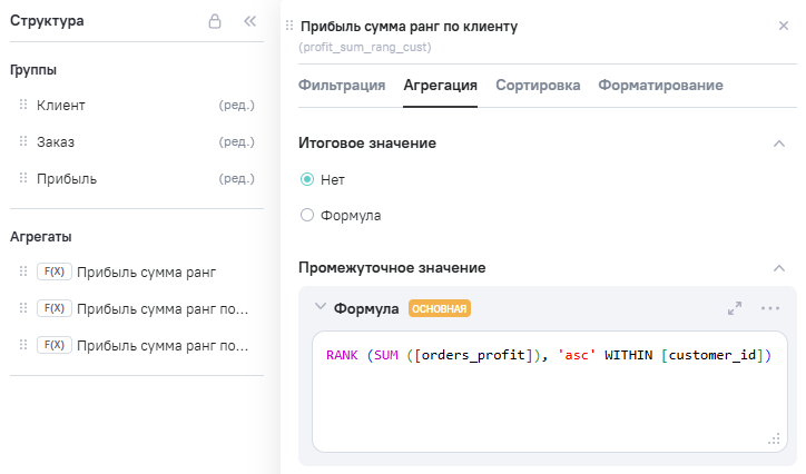 2.В Расчетные агрегаты добавлен новый агрегат All_orders (все заказы), в Промежуточное значение указана формула ALL_CONCAT([orders], '; ').