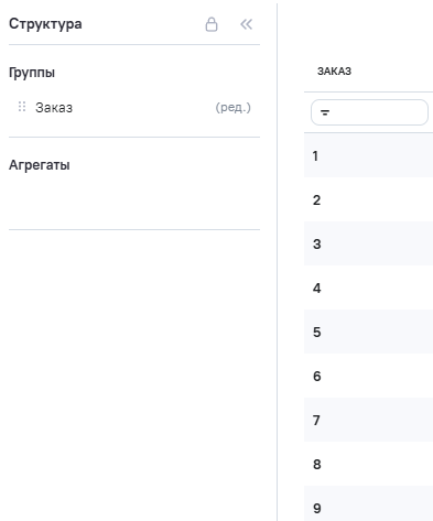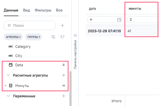 1.В виджете на вкладке Вид выбрана таблица агрегатов.