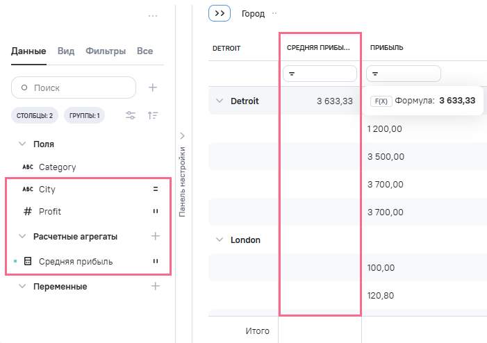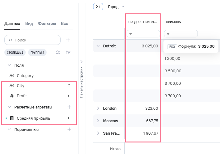 2.В Расчетные агрегаты добавлен новый агрегат Avg_profit