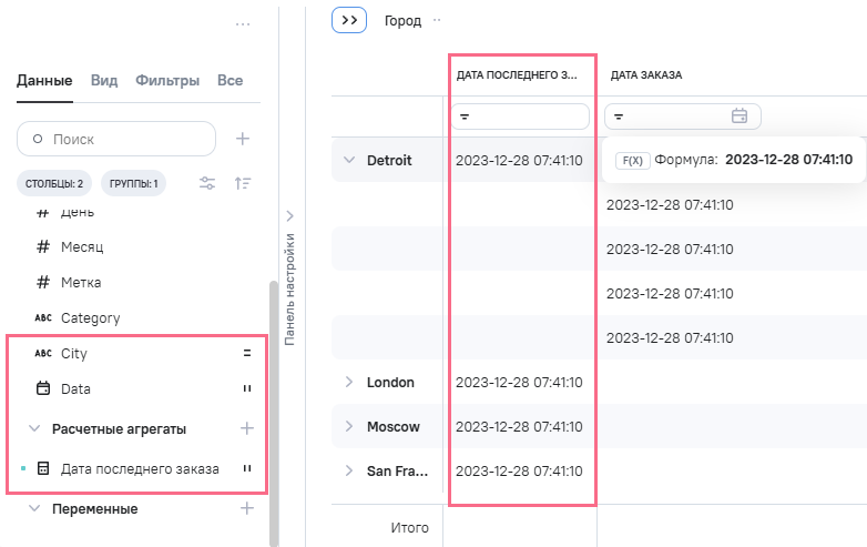 Для расширения возможностей агрегатных функций доступно управление уровнем детализации (LOD):