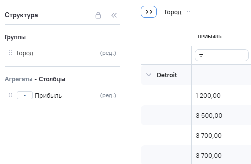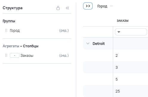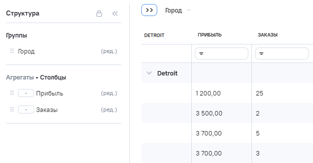 Уровень детализации доступен только для виджетов вида Таблица агрегатов.