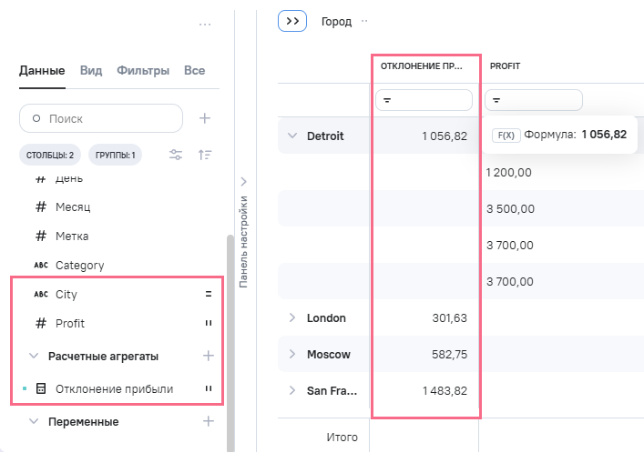 2.В Расчетные агрегаты добавлен новый агрегат Profit_stdev