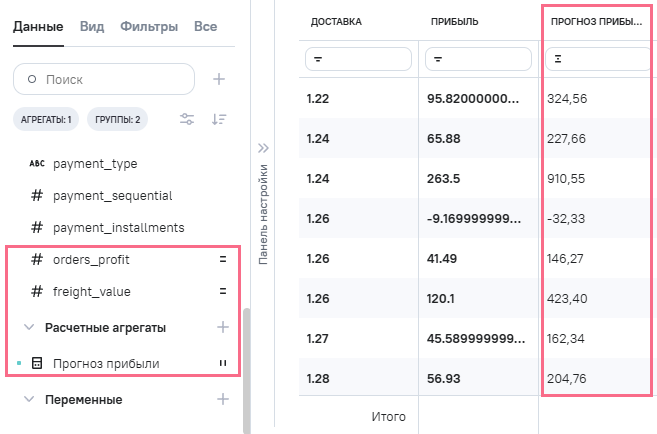 3.В Расчетные агрегаты добавлен новый агрегат Profit_freight