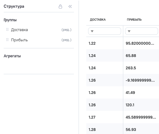 Цель: Отследить взаимосвязь(1) прибыли и стоимости доставки.
