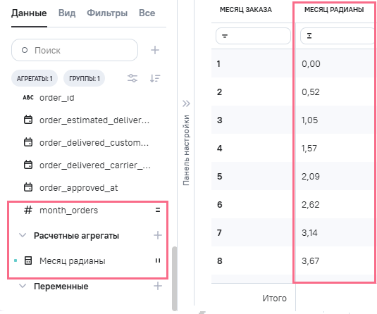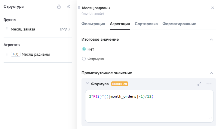 (месяц радианы), в Промежуточное значение указана формула 2*PI()*(([month_orders]-1)/12)