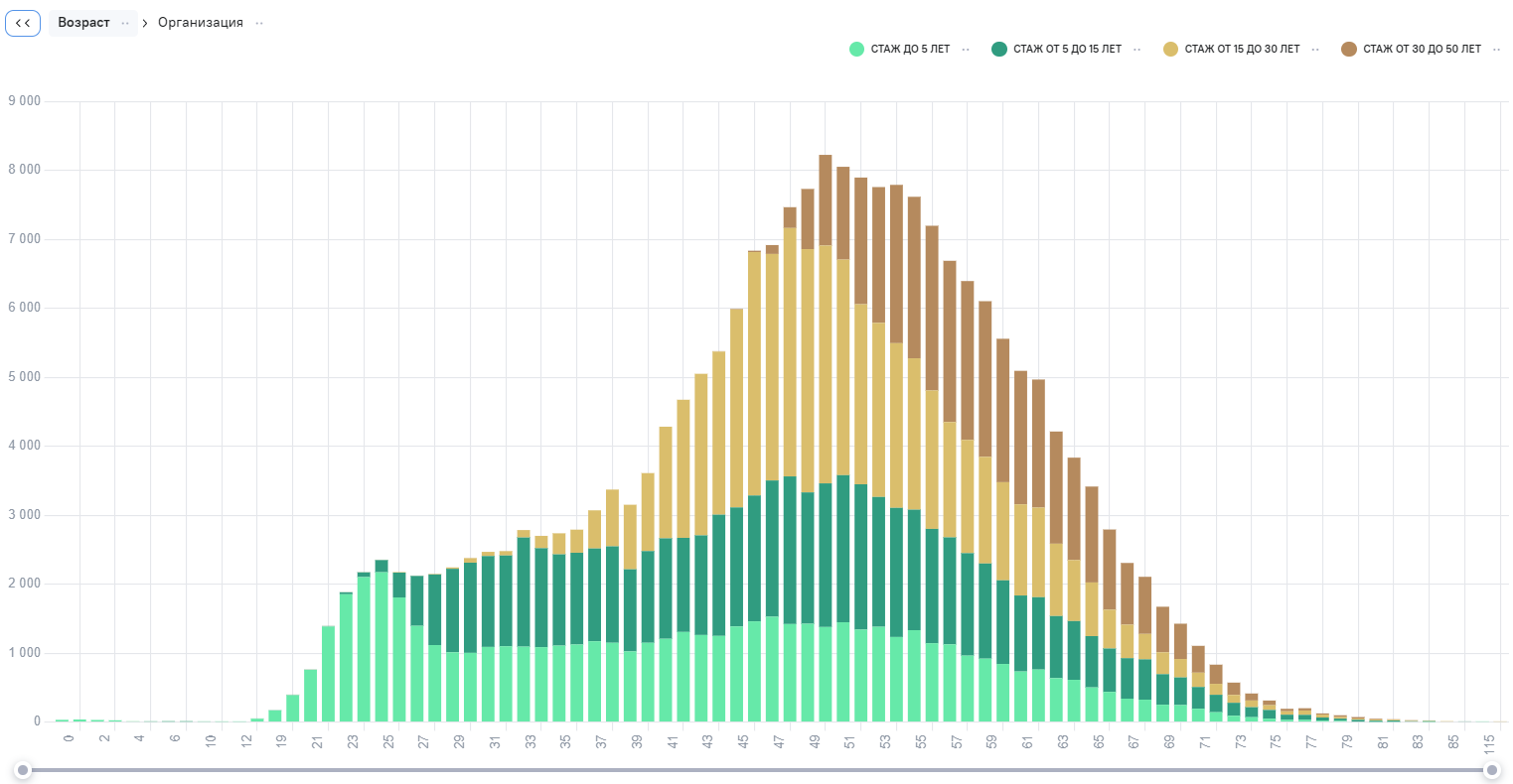 отображение детальной информации (точных значений оси, показателя, вид его агрегации и названия показателя) при наведении курсора мыши на выбранный столбец;