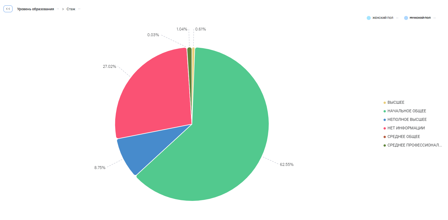 отображение детальной информации (названия сектора и значения показателя) при наведении курсора мыши на выбранный сектор. В детальной информации отображается вид агрегации значения на диаграмме и у значения группы отображается цвет используемый на секторе диаграммы;
