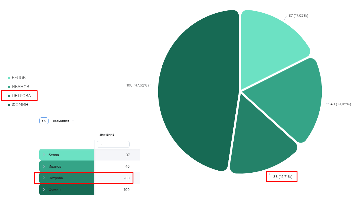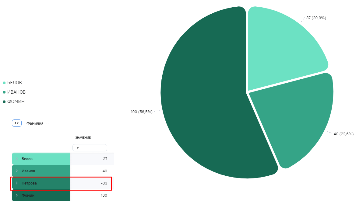 - Как абсолютные значения - доли секторов рассчитываются от модуля числа, данные отображаются в легенде. Значение по умолчанию;