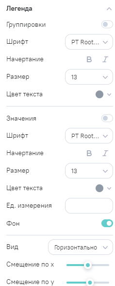 Смещение по x - ползунок, регулирующий смещение легенды по горизонтали;
