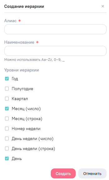 Для создания иерархии поля с типом Дата выполните следующие действия: