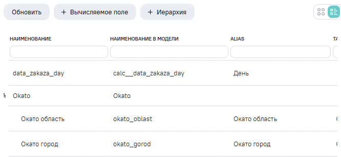 Нажмите на кнопку img Создать, иерархия будет создана. Для иерархии будут созданы вычисляемые поля по выбранным уровням.