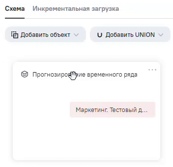 Для добавления ETL-блока нажмите на кнопку Добавить объект на панели кнопок и в выпадающем списке выберите пункт ETL-блок.
