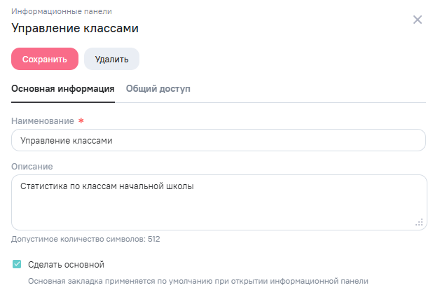 • img Сделать основной - позволяет назначить закладку по умолчанию при просмотре информационной панели.