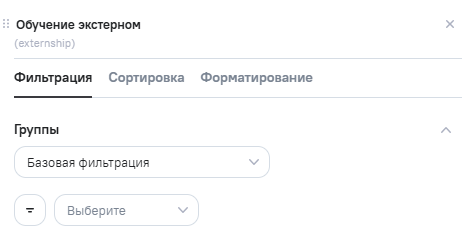 2.Блок фильтрации - доступен, если не выбрана переменная. Блок содержит следующие элементы: