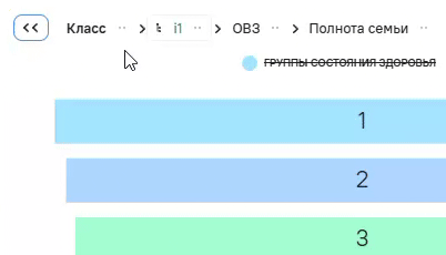 В графических виджетах (к примеру, в столбчатых или круговых диаграммах) при проваливании по уровням наименования группировок автоматически перемещаются так, чтобы текущий уровень группировки отображался на экране.