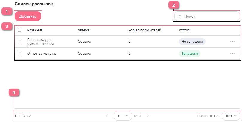 • Наименование - наименование объекта, которое отображается в реестре рассылок;