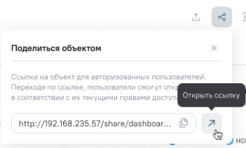 URL объекта - конкретный адрес объекта в Системе для авторизованных пользователей. Переходя по ссылке, пользователи смогут открыть объект в интерфейсе Системы и в соответствии с их текущими правами доступа к объекту. Отправка ссылки не предоставляет общего доступа к объекту;