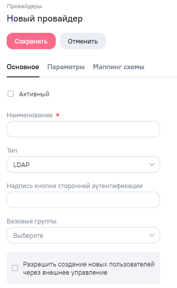 Для внешних провайдеров с типами OpenID, OpenID Token, OpenID Cookie, Внешний REST и LDAP kerberos:
