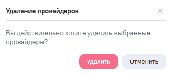 Удалить - при нажатии на кнопку, открывается окно подтверждения удаления провайдера.