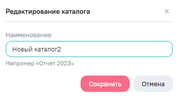 Редактировать - открытие окна редактирования каталога для изменения наименования. Кнопка доступна, если выбран каталог с правом на редактирование;