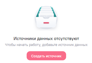 Если не создан или недоступен пользователю ни один источник данных, в разделе Источники данных отобразится сообщение: Источники данных отсутствуют. Чтобы начать работу, добавьте источник данных.