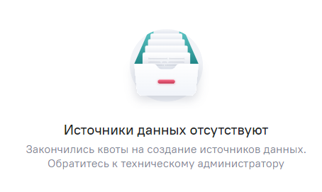 Если установлена лицензия с ограничениями по количеству активных объектов, квоты на создание источников данных закончились, а источники данных еще не были созданы или недоступны пользователю, отобразится сообщение Закончились квоты на создание источников данных. Обратитесь к техническому администратору.