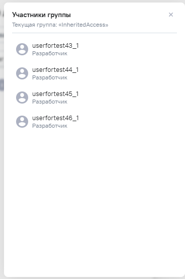 Чтобы ознакомиться с составом группы нажмите на кнопку Участники группы, отобразится окно, в котором будут перечислены все пользователи, входящие в состав выбранной группы. Если в группу еще не были добавлены пользователи, при открытии окна появится текст Пользователей нет. В группу пока не добавлен ни один пользователь.