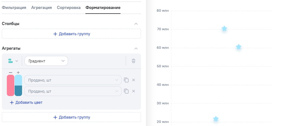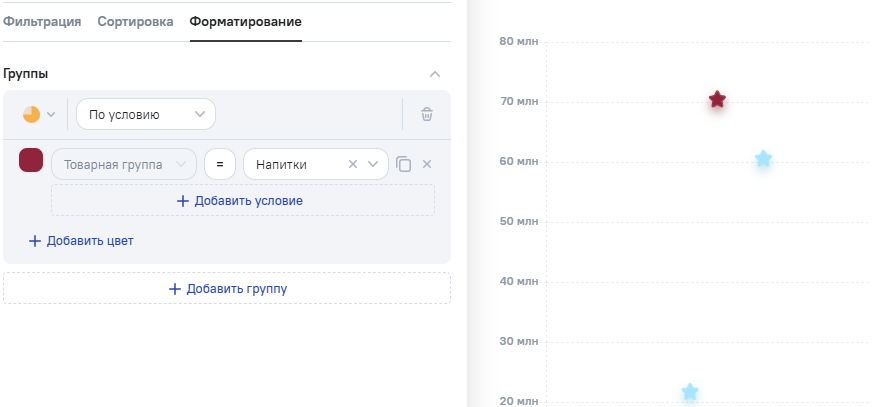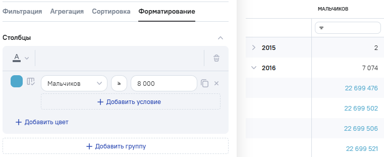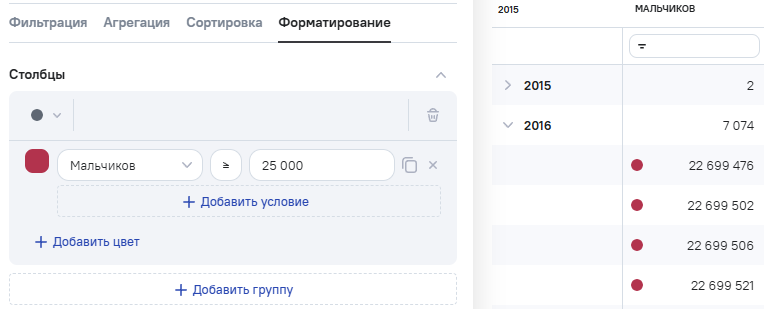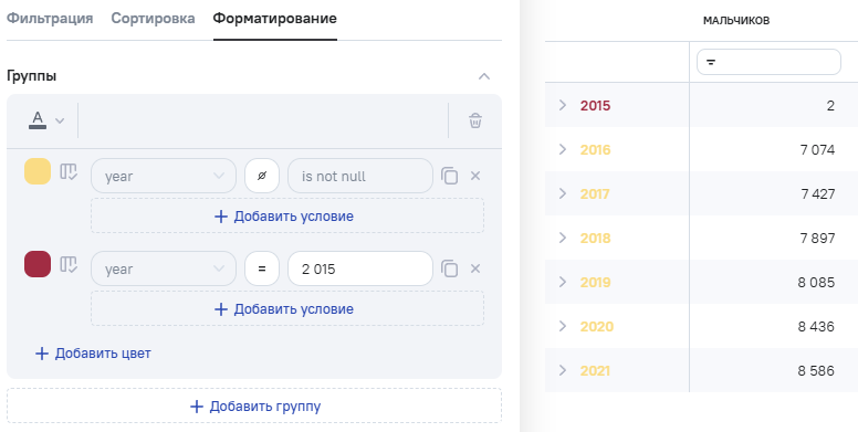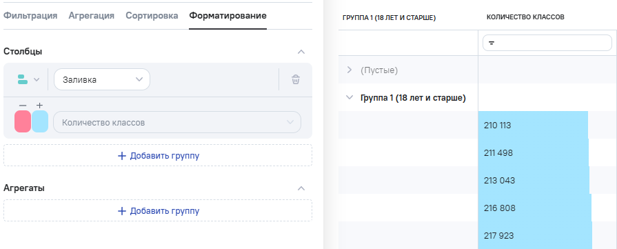 Сводная таблица поддерживаемых видов форматирования для виджетов с примерами.