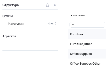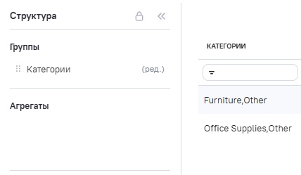 3.В Расчетные агрегаты добавлен новый агрегат Category_edit (категории товаров), в Промежутоное значение указана формула RTRIM ([category]).