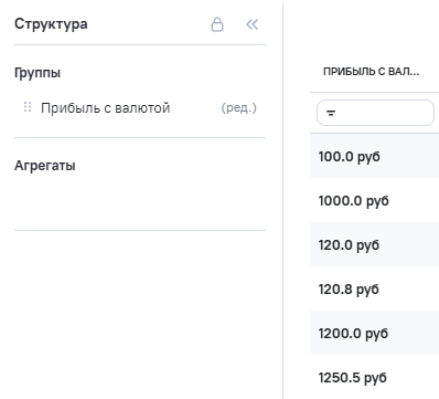 2.На вкладке Данные поле Profit (прибыль с валютой) определено как Группы.