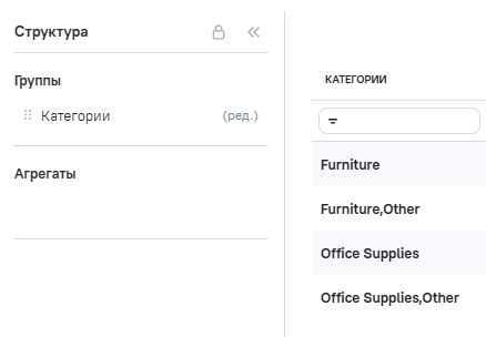 3.В Расчетные агрегаты добавлен новый агрегат Category_check (проверка категории), в Промежутоное значение указана формула STARTSWITH ([category], 'Furniture').