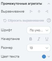 Позволяет задать параметры отображения итоговых значений агрегации.