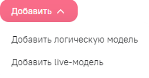 Добавить - доступна, если не выбрана модель или каталог. При нажатии на кнопку Добавить открывается выпадающий список с пунктами:
