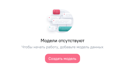 Если не создана или недоступна пользователю ни одна модель, в разделе Модели отобразится сообщение: Модели отсутствуют. Чтобы начать работу, добавьте модель данных.