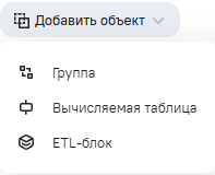 - Клонировать - создание копии вычисляемой таблицы. Клонирование доступно только в контекстном меню в блоке Вычисляемые таблицы;