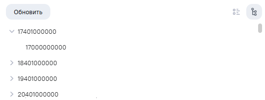 Обновить позволяет обновить данные иерархии после изменений. Также доступен выбор режима отображения полей:
