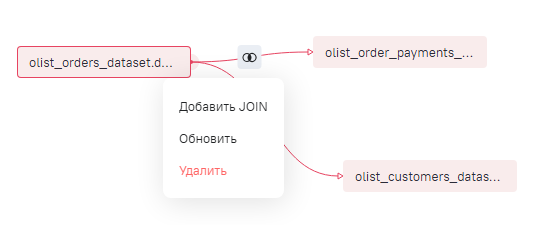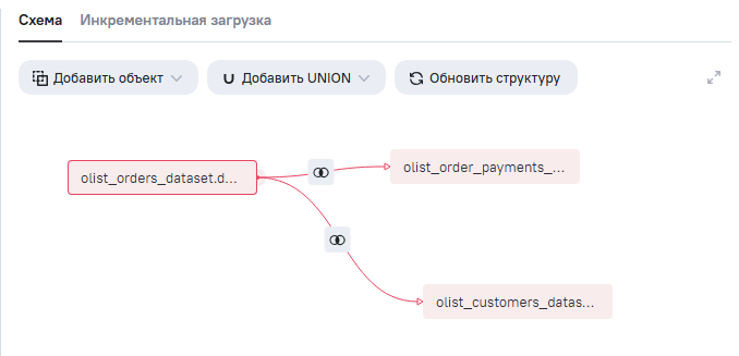 Изменения в схеме модели, влияющие на ее данные, запускают обновление таблицы предпросмотра как в части структуры (состава столбцов), так и в части данных (значений ячеек). Кнопка