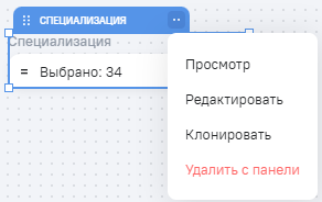 Клонировать - создается клон системного виджета, он автоматически добавляется на область информационной панели. В названии фильтра будет добавляться слово (клон);
