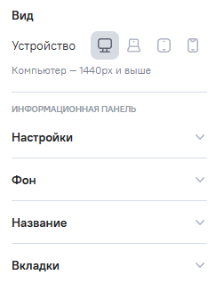 Устройство - информационная панель будет адаптироваться в зависимости от разрешения экрана текущего устройства при переходе по внутренним и публичным ссылкам, переключатель преобразует размеры рабочей области:- переключение по Ctrl + 1
