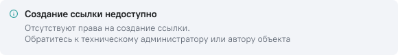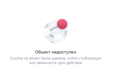 Если доступ к объекту по ссылке будет закрыт (ссылка удалена, снята с публикации, закончился срок действия ссылки или в системе отключена работа с публичными ссылками), при переходе по ссылке пользователю будет выведено на экран соответствующее сообщение.
