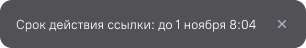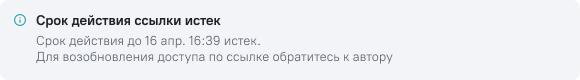 Если ссылка сгенерирована с ограниченным по времени сроком действия, то при открытии выйдет уведомление со сроком действия ссылки.