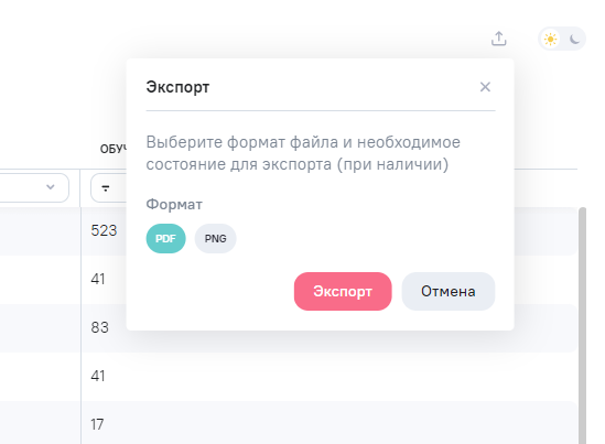 Экспорт - по нажатию на кнопку откроется окно экспорта. Доступна при наличии права Выгрузка;