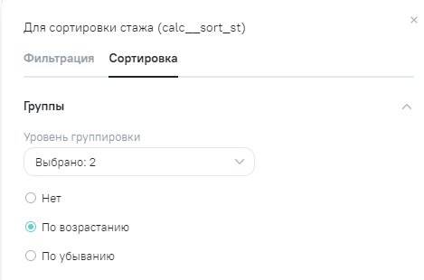 При наличии большого количества уровней группировок или длинных наименования группировок не вмещающихся в одну строку, группировки располагаются в одну строку с возможностью их перемещения с помощью кнопок-стрелок -