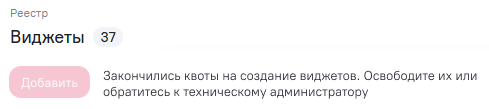 Добавление виджета может быть заблокировано, если квоты на создание виджетов закончились. Количество квот определяется лицензией с ограничениями по количеству активных объектов.