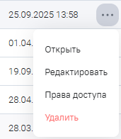 По кнопке в строке каталога открывается выпадающий список с пунктами для выполнения действий над каталогом: