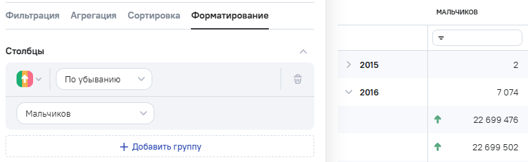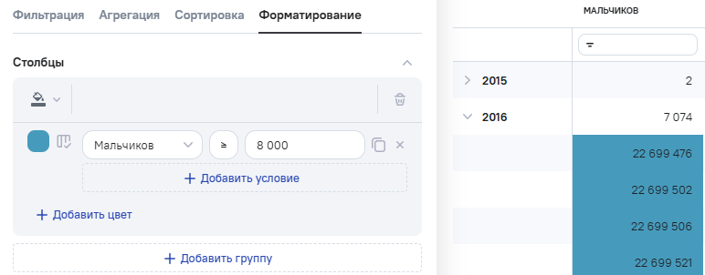 Сводная таблица поддерживаемых видов форматирования для виджетов с примерами.