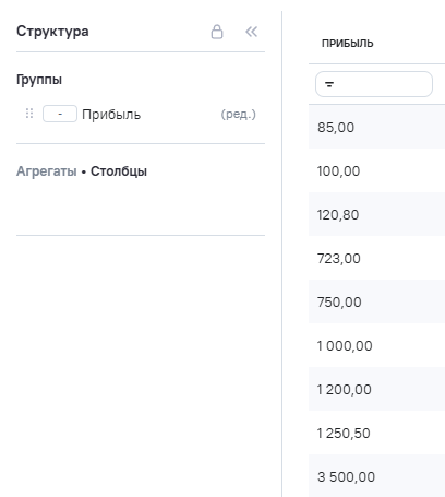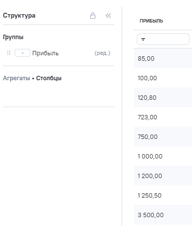1.В виджете на вкладке Данные поле Profit (прибыль) определено как Группы.