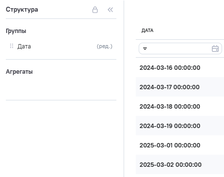 1.В виджете на вкладке Вид выбрана таблица агрегатов.