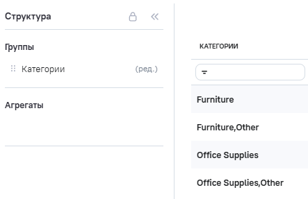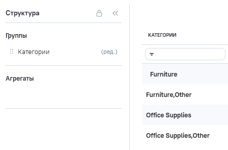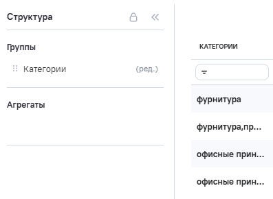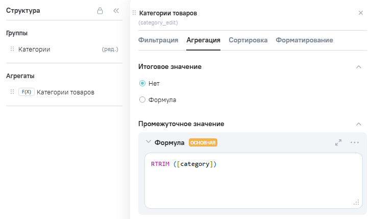 3.В Расчетные агрегаты добавлен новый агрегат Category_edit (категории товаров), в Промежутоное значение указана формула RTRIM ([category]).